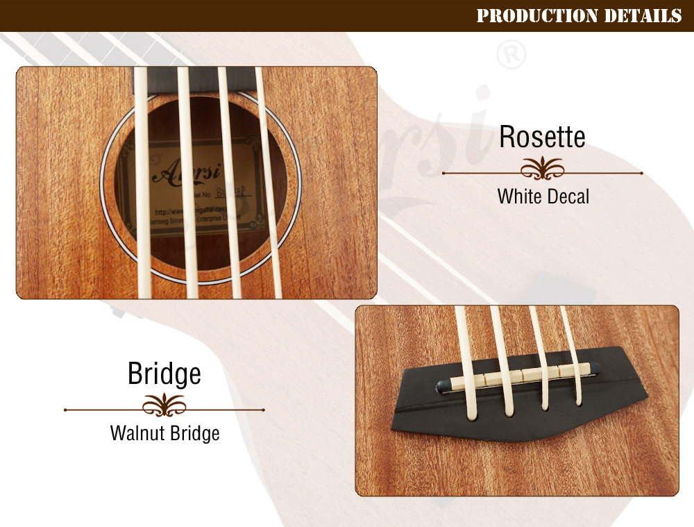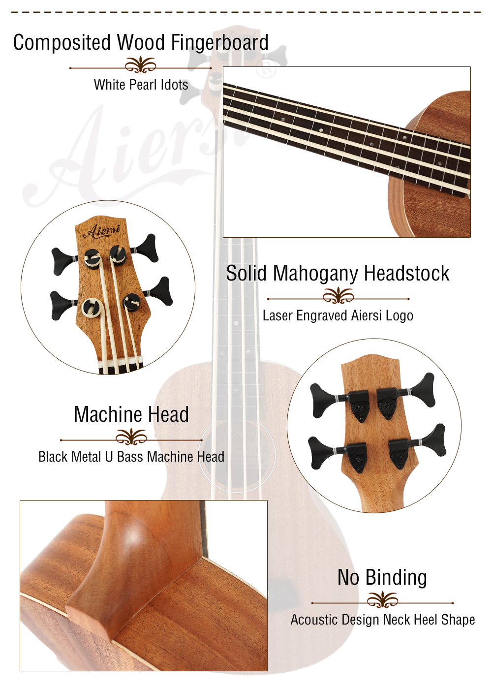 China Aiersi Brand Sapele Body Electric Bass Ukulele Fretless U-Bass