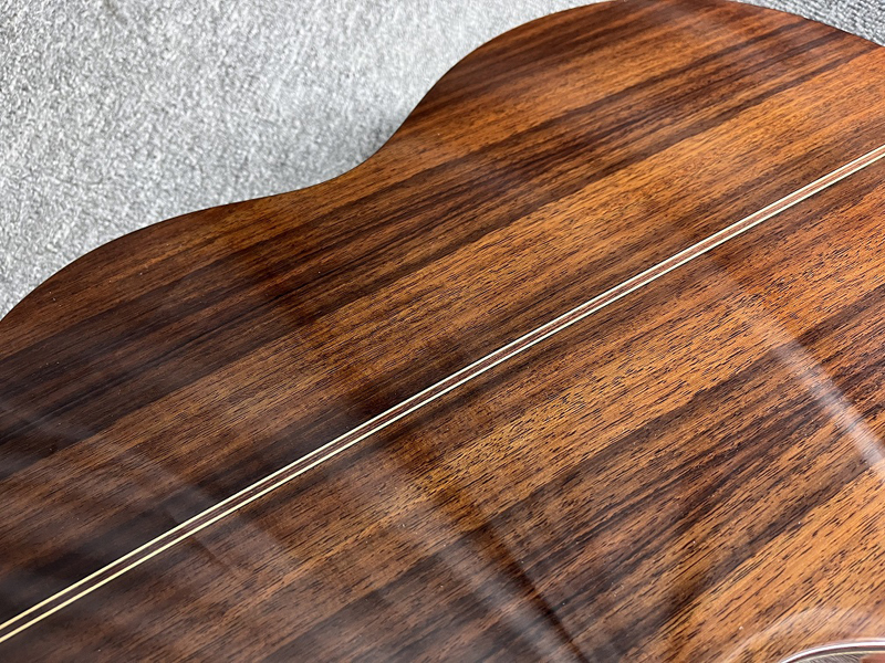 The craftsmanship is exceptional and the sound is nearly the equal of our more expensive Grand Concert model. The back and sides are rosewood veneer, and the top is AAA-grade solid Canadian cedar. The fret board and bridge are Indian rosewood. The nut and saddle are genuine ox bone. The frets are very tightly fitted and nicely dressed. The tuners are beautiful, with black imitation ebony knobs. It has a Spanish design with traditional fan bracing. It has an adjustable truss rod to ensure that the neck always remains perfectly straight. The top is protected along the edge by rosewood five-line bindings. The scale length is 650mm and the nut width is 52mm. The volume is more than ample, and the sound is rich and full, with plenty of sustain.