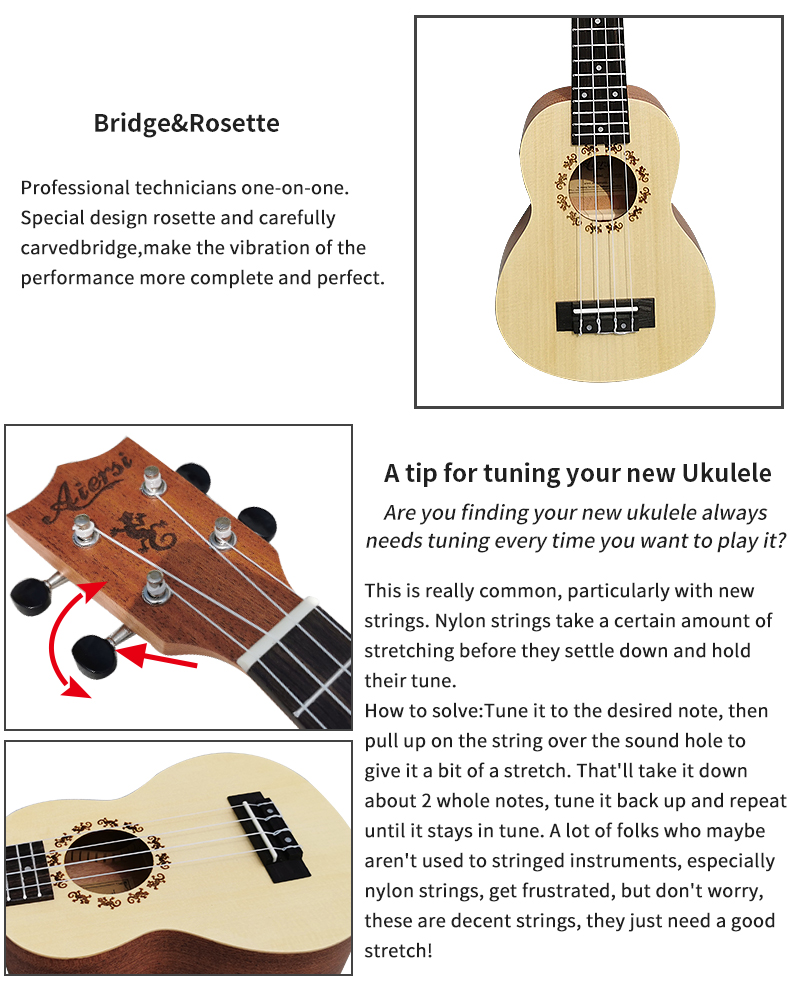China aiersi brand 21 inch gecko spruce soprano Ukulele