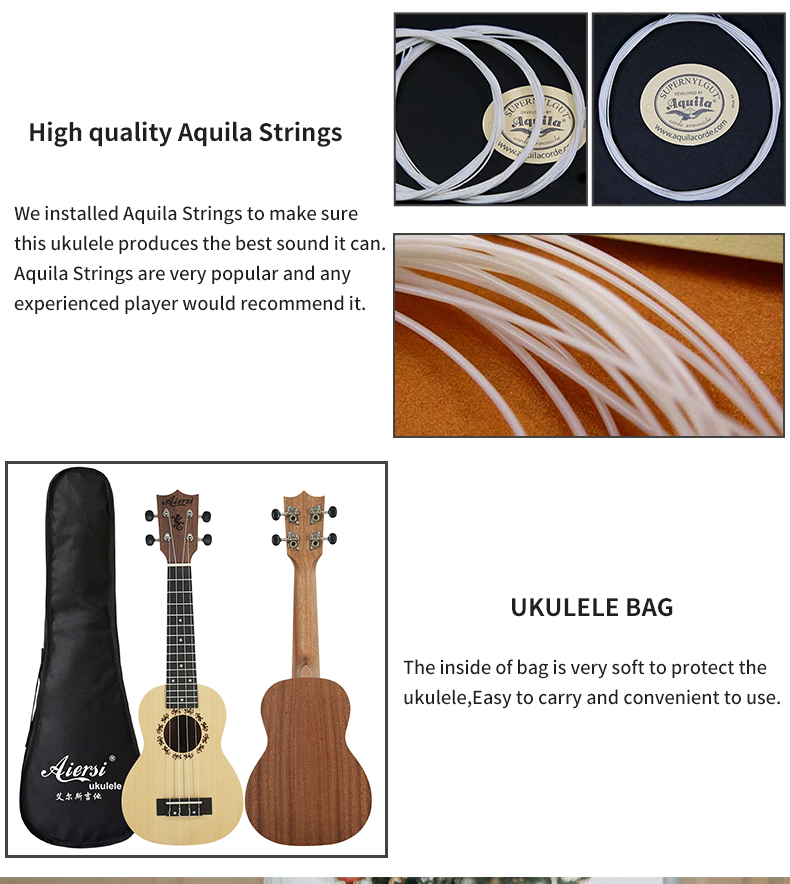 China Aiersi Brand Quality Starter Plywood Body Soprano Hawaii Ukulele