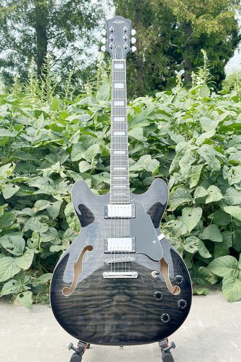 Black Colour Curly Ash Semi Hollow Electric Jazz Guitar