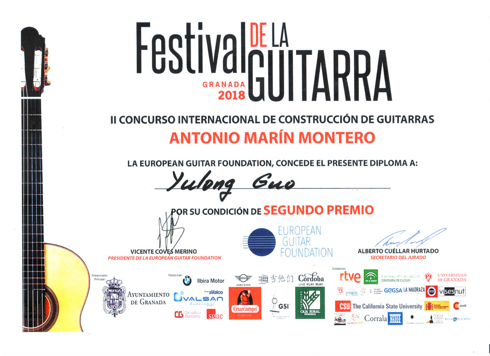Congratulating for Aiersi guitar Luthier Mr.Yulong Guo Won the second-place at Festival Internacional de la Guitarra de Granada 2018 Spain. the best honour in Chinese Guitar History.