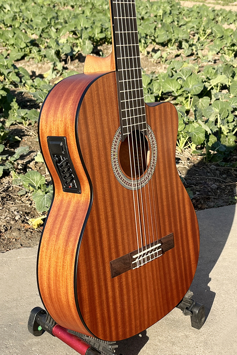 0 CommentsSpread the loveModel:SC01MMCE Size: 39 inch Nut width : 52MM String Scale: 650MM All body: Laminated Mahogany Fingerboard&Bridge: Richlite wood Machine Head: Golden-Plated Nut&Saddle :ABS With Pickup,4-Band Finish: MattTags: buy electric classical guitar, classical guitar electric price, custom electric classical guitar, cutaway classical guitar electric, electric classical guitar china, good quality classical guitar, mahogany classical guitar, nylon string classical guitar