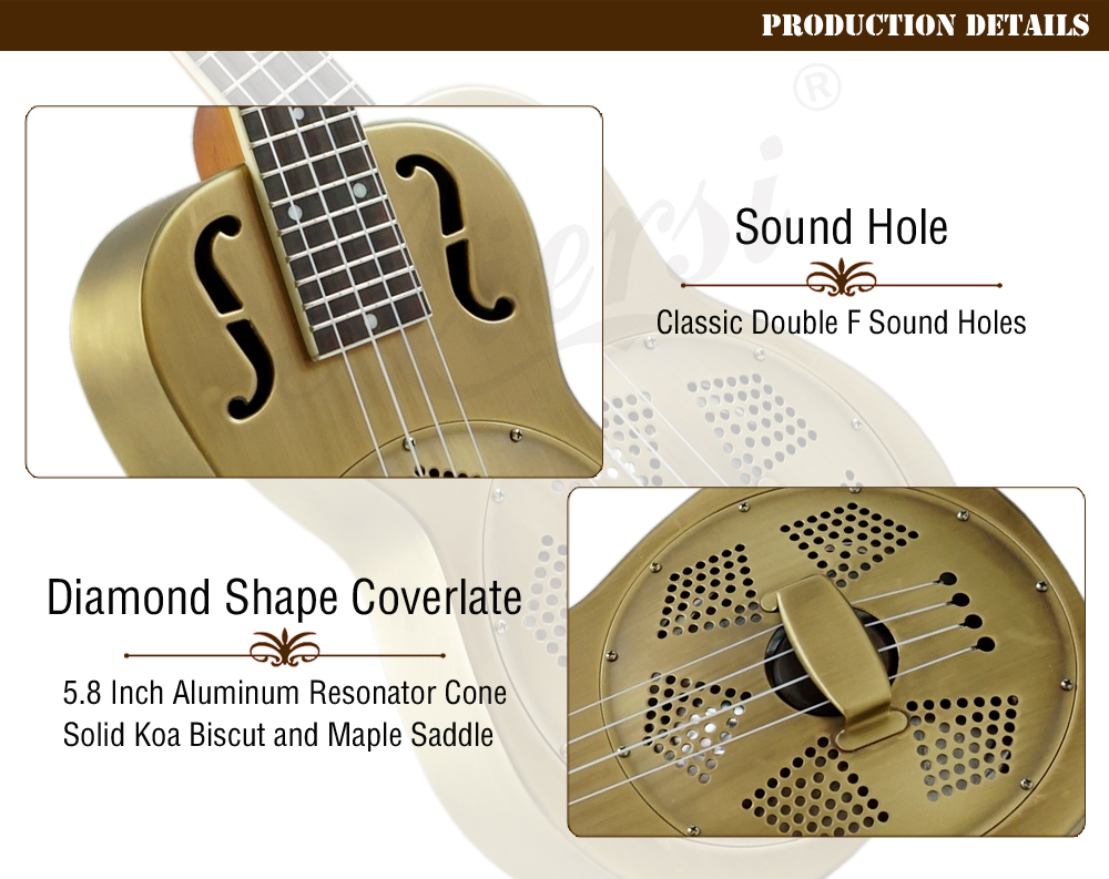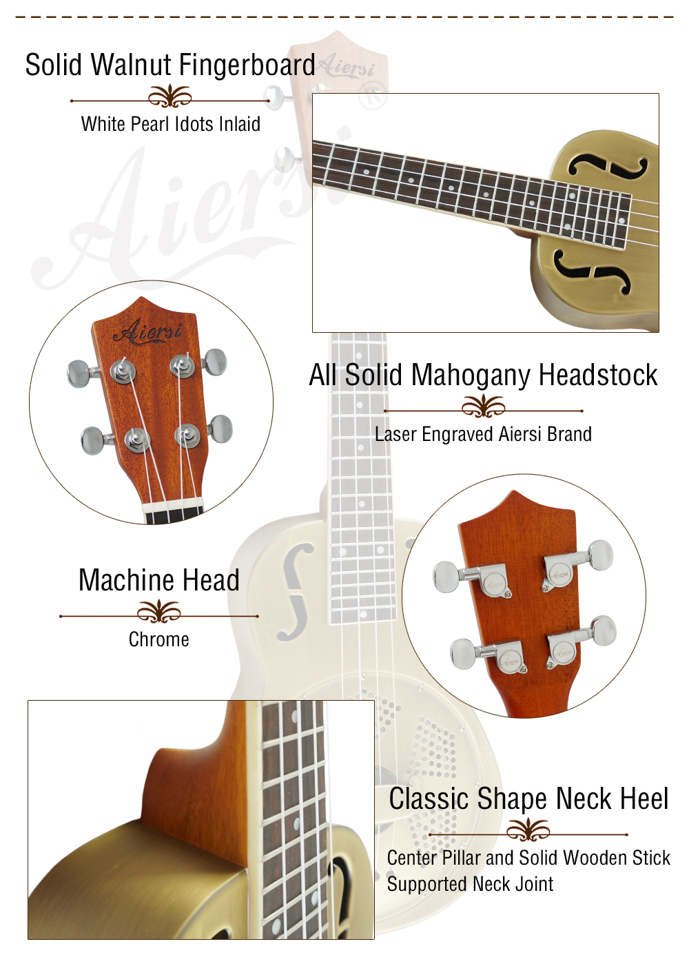 China Aiersi Brand 24 Inch Concert F Hole Brass Bell Body Resonator Ukulele