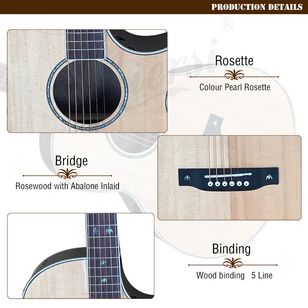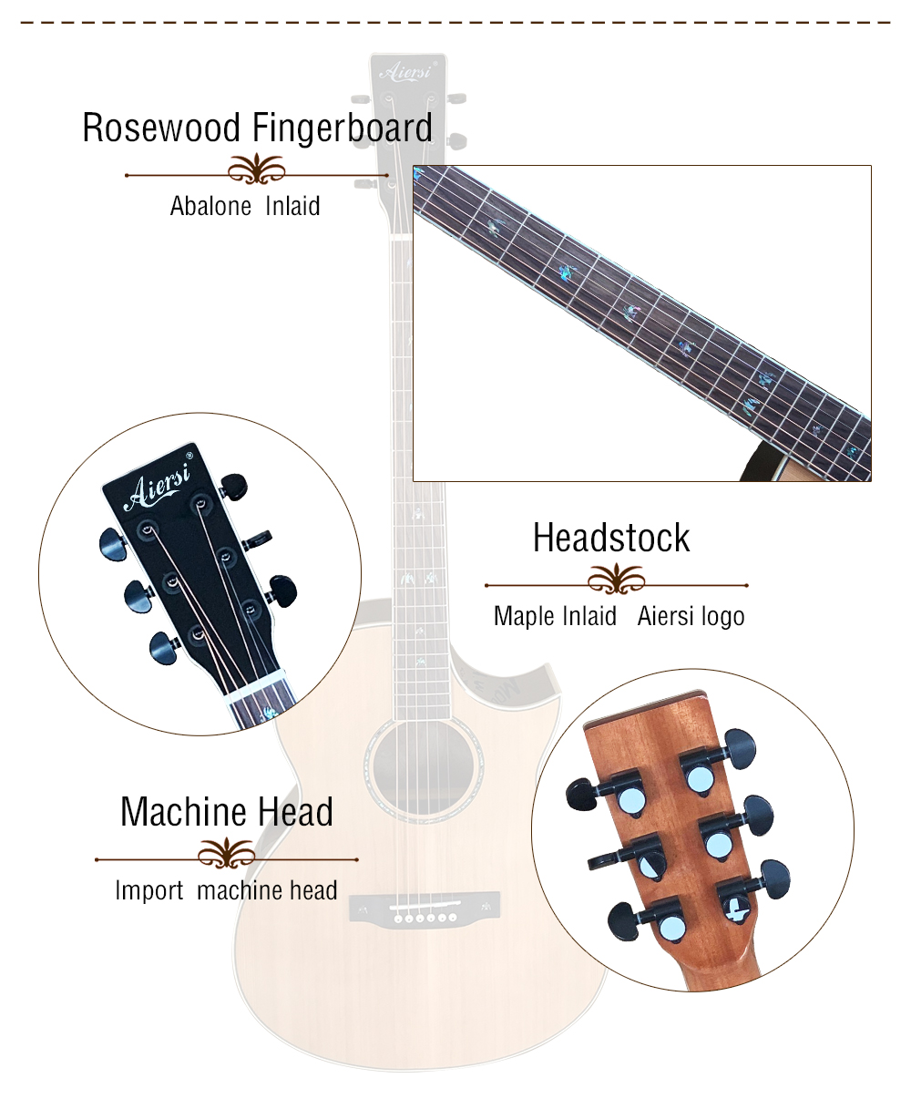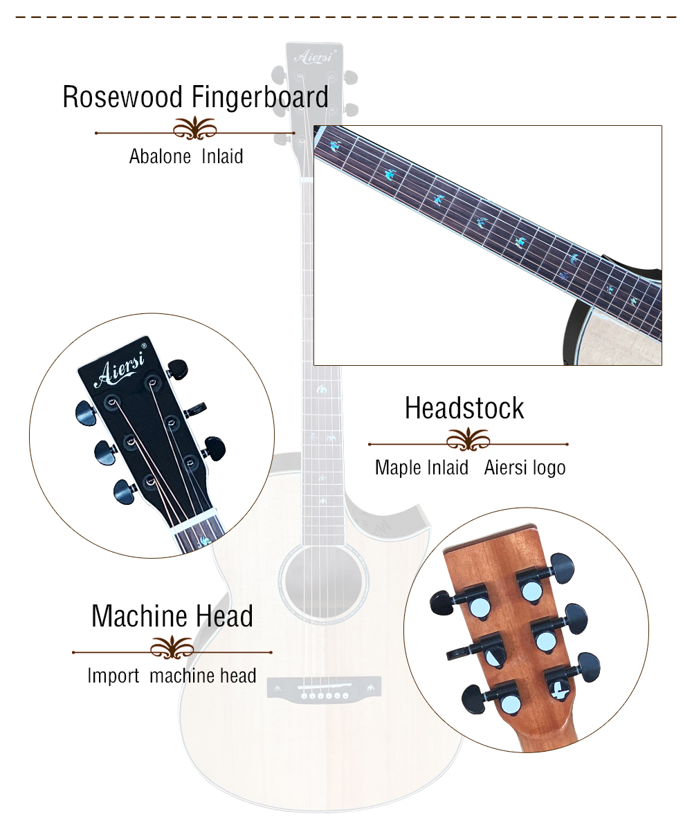 The familiar warmth of Aiersi solid top acoustic guitar is something memories and traditions are built with, and a new player’s first guitar is the most critical part of their musical journey. Model SG02SMR combine the timelessness of tried-and-true body shapes with top-notch craftsmanship and modern features that will appeal to beginner and intermediate guitarists alike. This guitar procents clear and melodious sound, which would be impressive and memorable.With its wonderful sound quality and substantial price, this guitar is worth a recommendation.