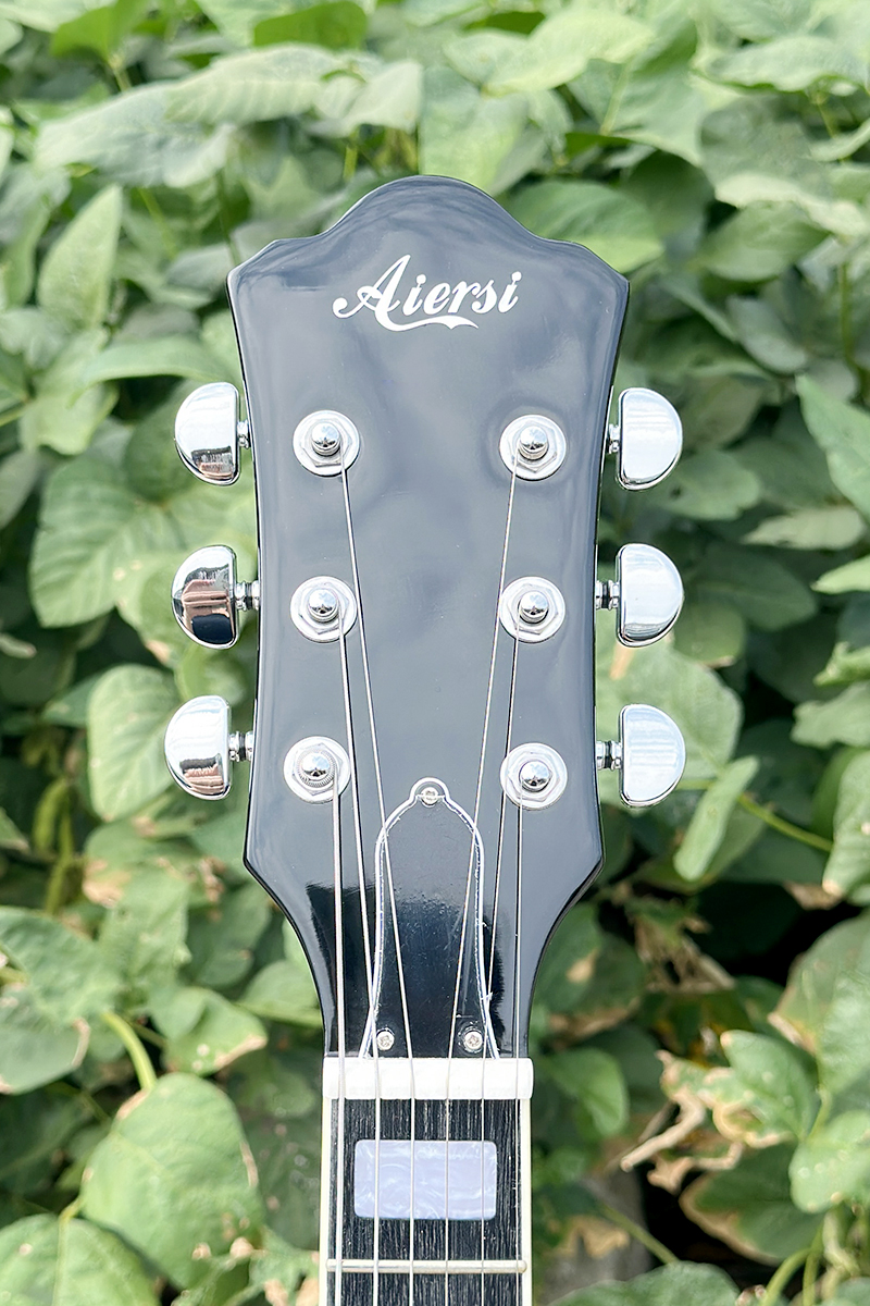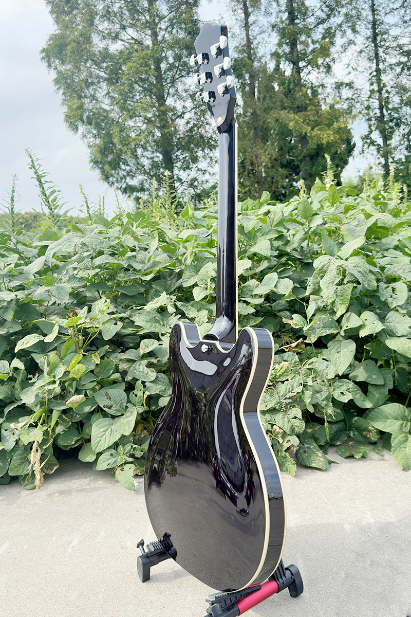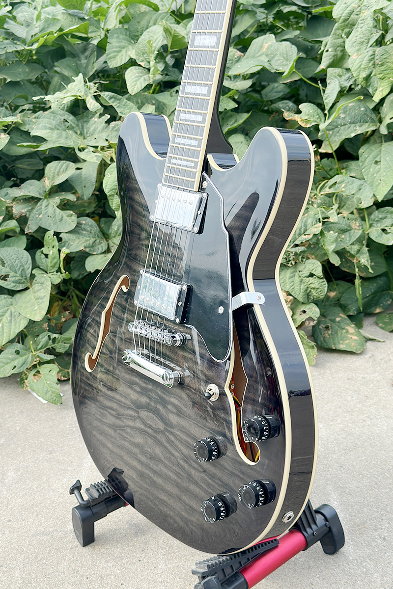 Black Colour Curly Ash Semi Hollow Electric Jazz Guitar